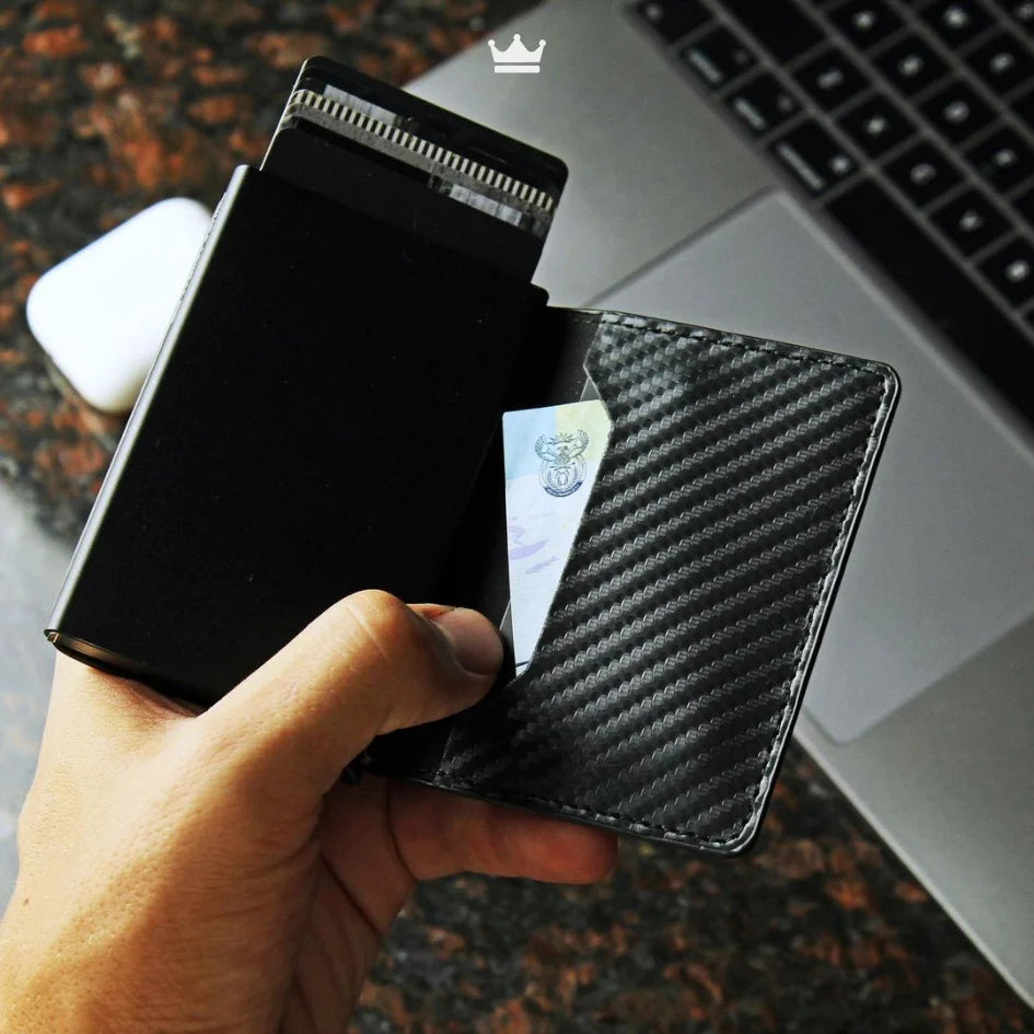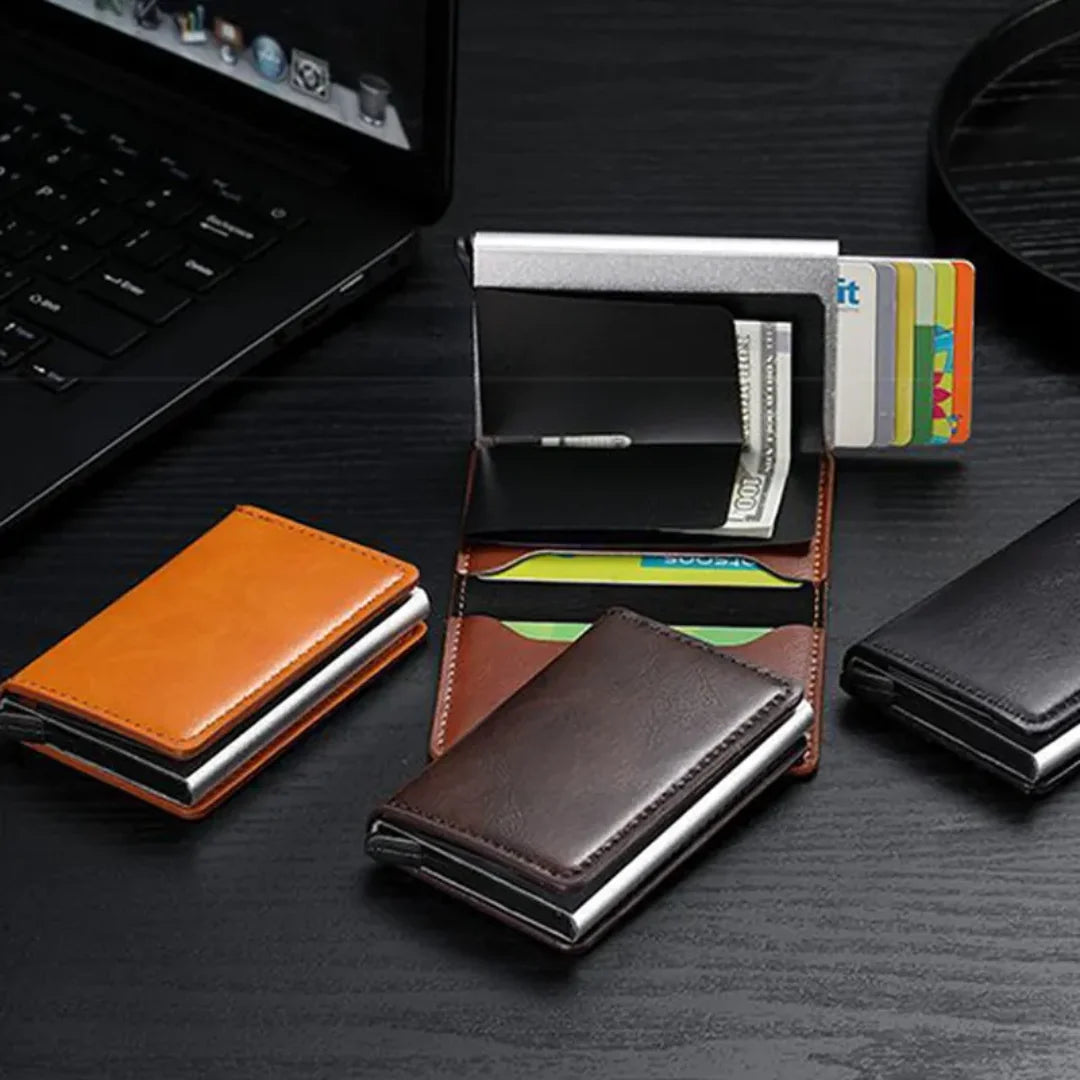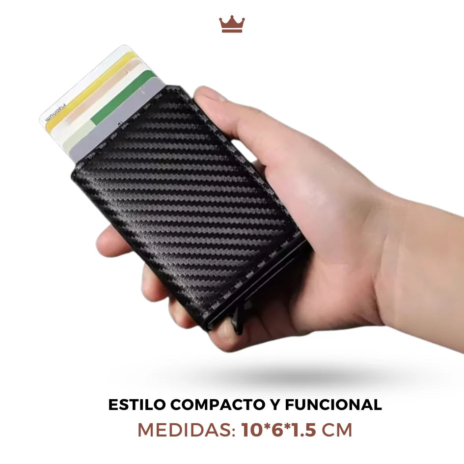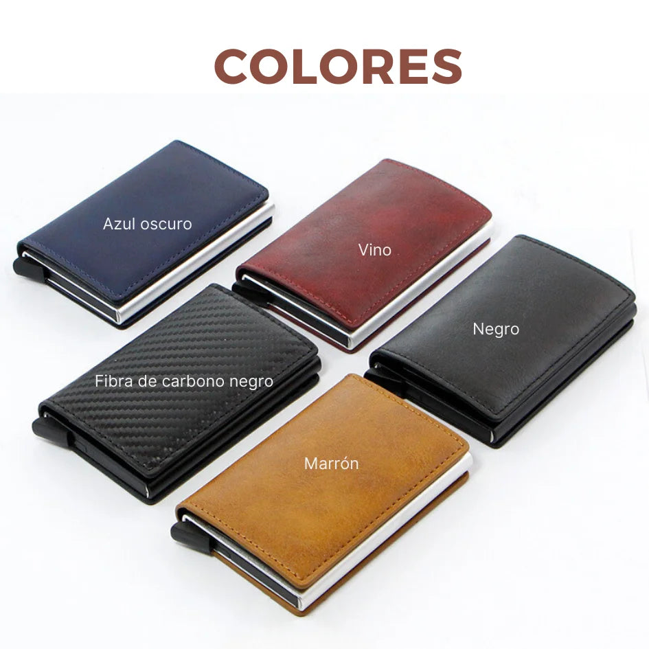 🔹 Tarjetero de aluminio con tecnología antirrobo